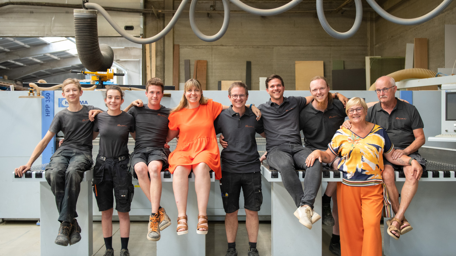 Mivan zoekt een echte vakman die het maatwerk wil voorbereiden, plaatsen en afwerken.  Bij meubelmaker Mivan kom je terecht in een familiaal bedrijf, en voer je samen met de zaakvoerder projecten van A tot Z uit.Houten keuken op maat met strak design en warme afwerking, gerealiseerd door Mivan.Vakman van Mivan aan het werk aan een houten maatkast in het atelier in Houthulst.Groepsfoto van het Mivan-team in het atelier — trots op hun vakmanschap.Schrijnwerker van Mivan werkt met oog voor detail in de werkplaats.Hout, vakmanschap en moderne technieken komen samen in het atelier van Mivan.Interieurproject in uitvoering: Mivan-medewerker controleert de afwerking van een kastdeur.Interieurbouwer freest hout op een moderne CNC-machine bij Mivan in Houthulst.