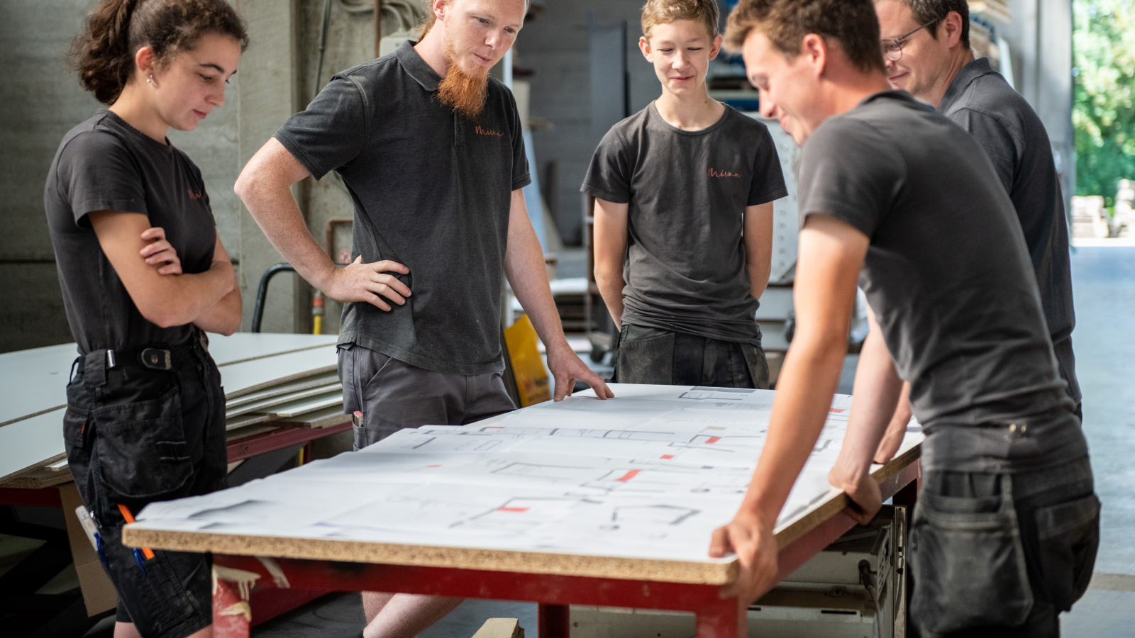 Wanneer het ontwerp goed aanvoelt, starten we met de realisatie. Maatwerk vraagt precisie en vakmanschap. Daarom bouwen we alles in ons eigen atelier, met en modern machinepark en ervaren handen. We zorgen dat elk detail klopt, dat elk meubel perfect past en dat de afwerking subliem is.
